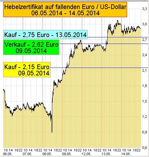 | 19.06.2014 | Hebelzertifikat | 1.190 € | 7,50 € | 159 | Kauf | PA2Q7L |
