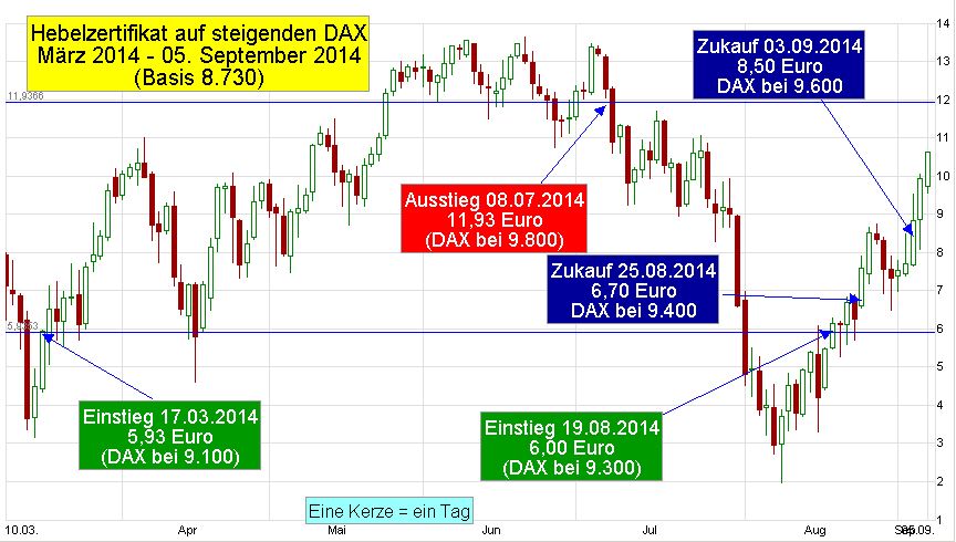 | 19.06.2014 | Hebelzertifikat | 1.190 € | 7,50 € | 159 | Kauf | PA2Q7L |