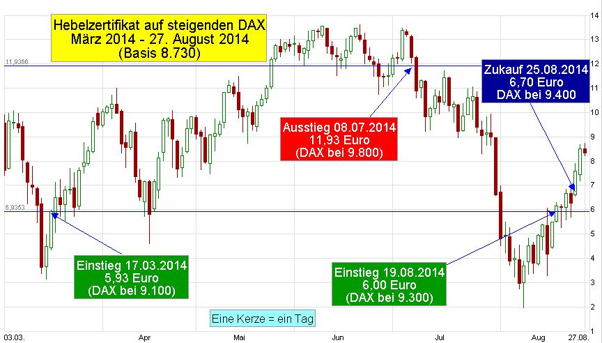 | Zertifikate fallend | 5.000 | 16.05.2014 | 10.06.2014 | 654 € | 13,08% |