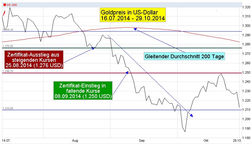 Die ursprüngliche Investitionssumme von 10.000 Euro haben wir damit um das Dreieinhalbfache erhöht. Für ein neues Engagement wollten wir uns ab dem 05. Januar 2015 zunächst am gleitenden Durchschnitt der letzten 200 Tage orientieren. Diese Überlegung führte am 8. Januar zur ersten Investition im neuen Jahr. Der DAX hatte die Durchschnittlinie nach einem Rücksetzer nach oben überschritten. Unser Risiko nach unten legen wir auf 9.400 Punkte fest. Bei einer Fortsetzung des Aufwärtstrends werden wir auf ein Zertifikat mit einem höheren Hebel umsteigen.