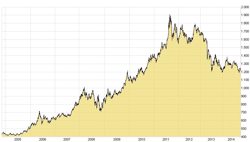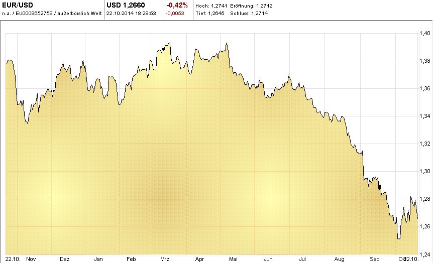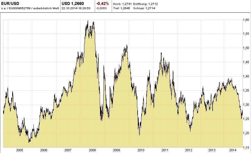 Wenn von irgendetwas viel vorhanden ist, wird es nach unserer Erfahrung eher billiger als teurer. Deshalb liegt es nahe, dass der Euro weiter eine Kellerparty feiert. Die Flucht aus dem Euro wird sich wohl weiter fortsetzen. Dabei bieten sich nicht nur andere Währungen zum Tausch an. Es gehört nicht viel prophetische Gabe zur Annahme, dass der Kauf von Aktien auf vielen Speisekarten steht, zumindest bei Kennern. Die mickrigen Zinsen tragen dazu ihren Teil bei.