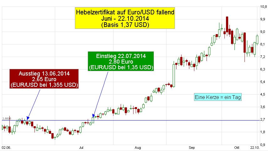 | EUR/USD | 10.000 € | 09.05.2014 | 21.01.2015 | 29.118 € | 291,18% |